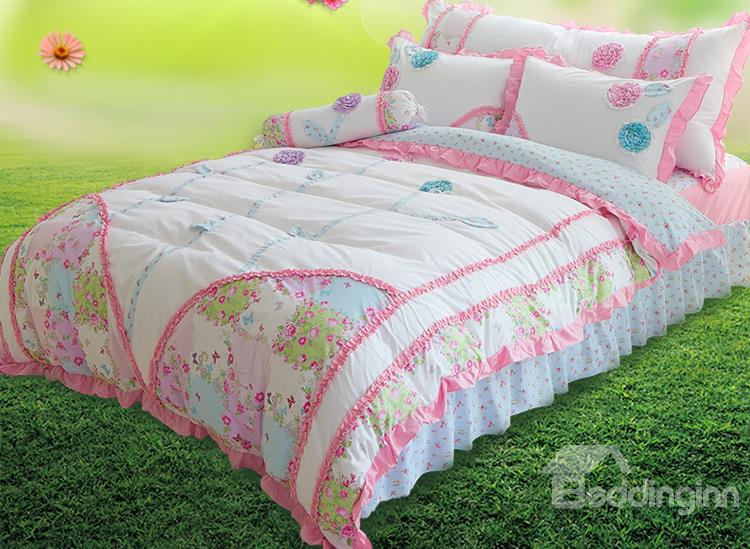 Millie Cot Single King Single Double Queen Quilt cover/duvet Pink floral, flange-edged in pink spots Comforter/coverlet Pink spots on a white background, trimmed with ribbon of pink flowers. ... Read More
