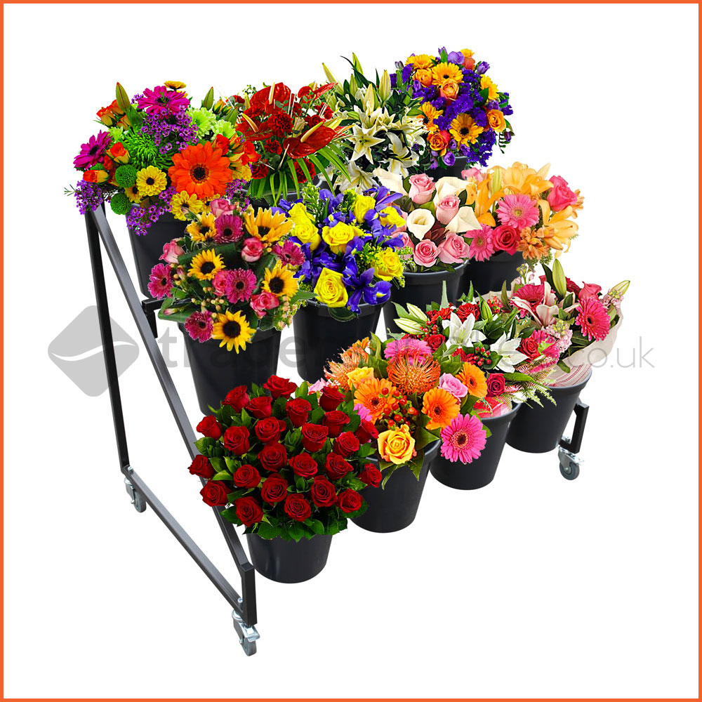 Flower Supplies Wholesale . flower Display stands. Most flower display racks come complete with buckets. We also have several retail store display shelving units, pegboard and slat wall flower displays. All metal floral display racks are non-rusting, powder coated steel for long life. ... Access Doc
